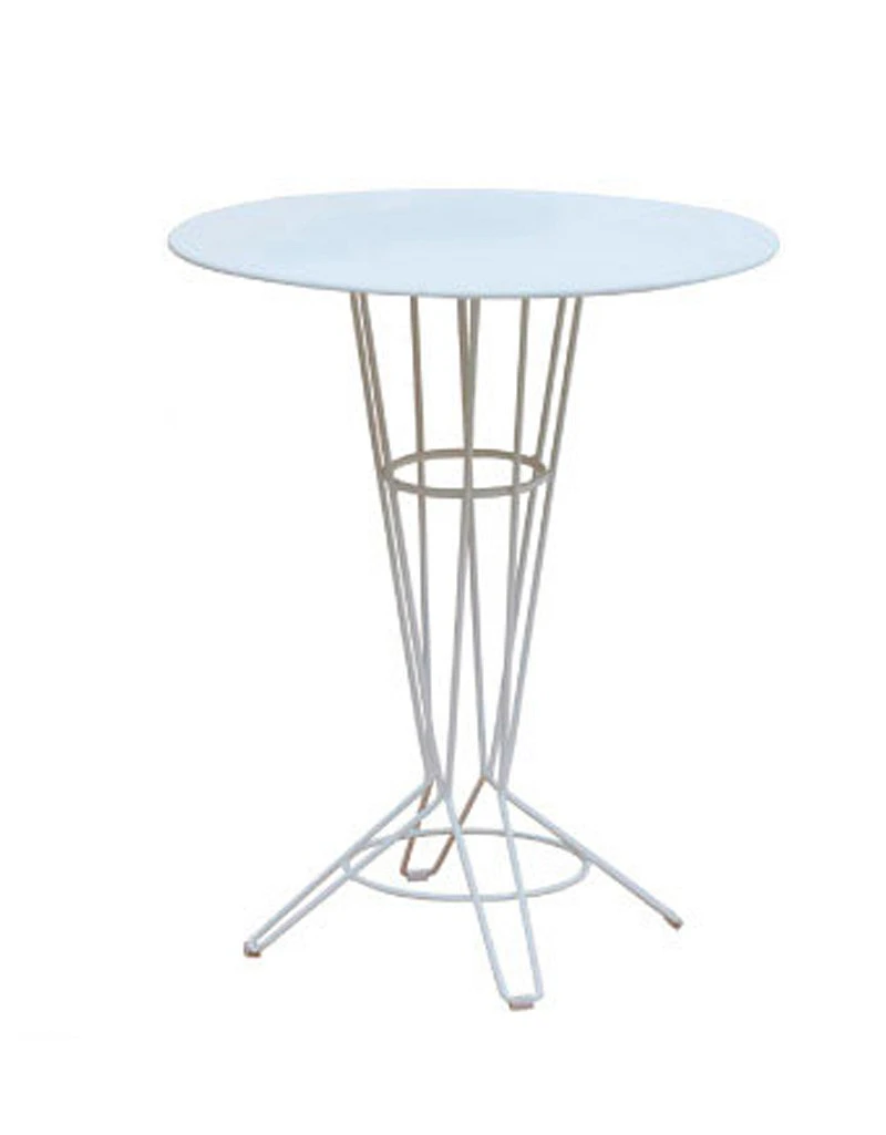 Mesa de pie tipo copa realizado con varilla de alambre galvanizado, recubierto en poliester polvo con tablero. Medidas redondas y cuadradas