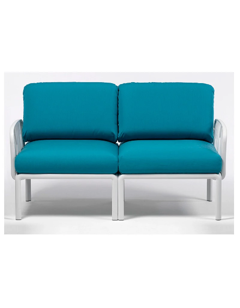 Sofá modular. Estructura en polipropileno fiberglass tratado anti-UV y teñido en masa. Respaldo y apoyabrazos acopables a todos los lados. Desmontable. Efecto mate. Con tapones antideslizantes